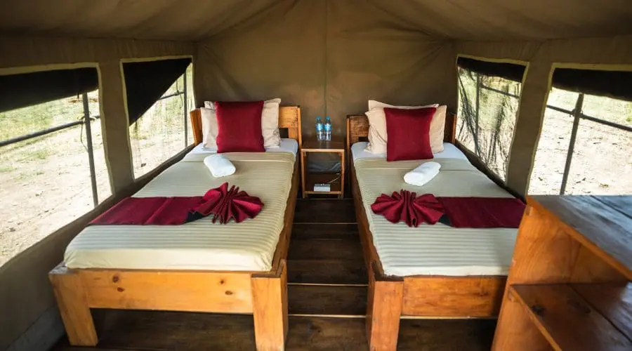 Enjoy luxury safari accommodations with king-size beds and private ensuite bathrooms