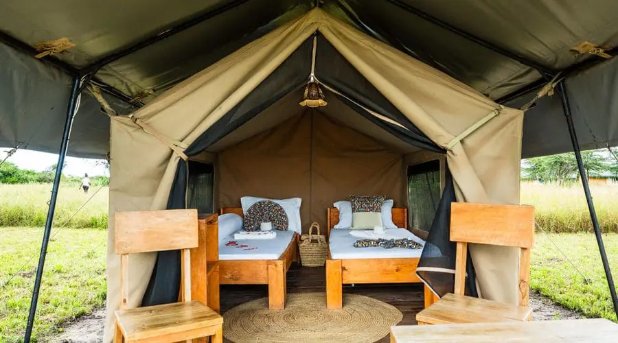 The Safari Tent at Shemeji Safari Serengeti Ikoma offers a budget-friendly way to experience the Serengeti. Each tent is furnished with two single beds and includes a small outdoor seating area, perfect for enjoying the surroundings. Simple yet effective, this accommodation provides an adventurous back-to-basics experience. Conveniently located near the restaurant and bar, it’s ideal for those seeking an affordable Serengeti safari stay.